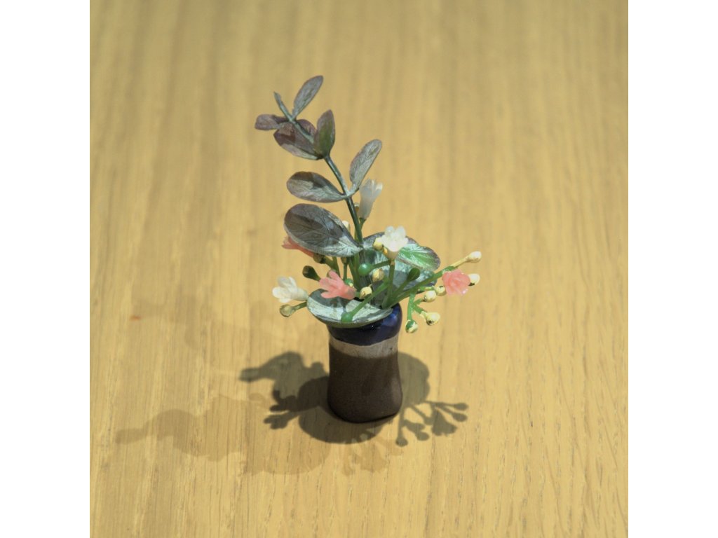 Každá kytička je pečlivě zasazena do vázičky, aby přinesla do mini světa trochu květinového kouzla.