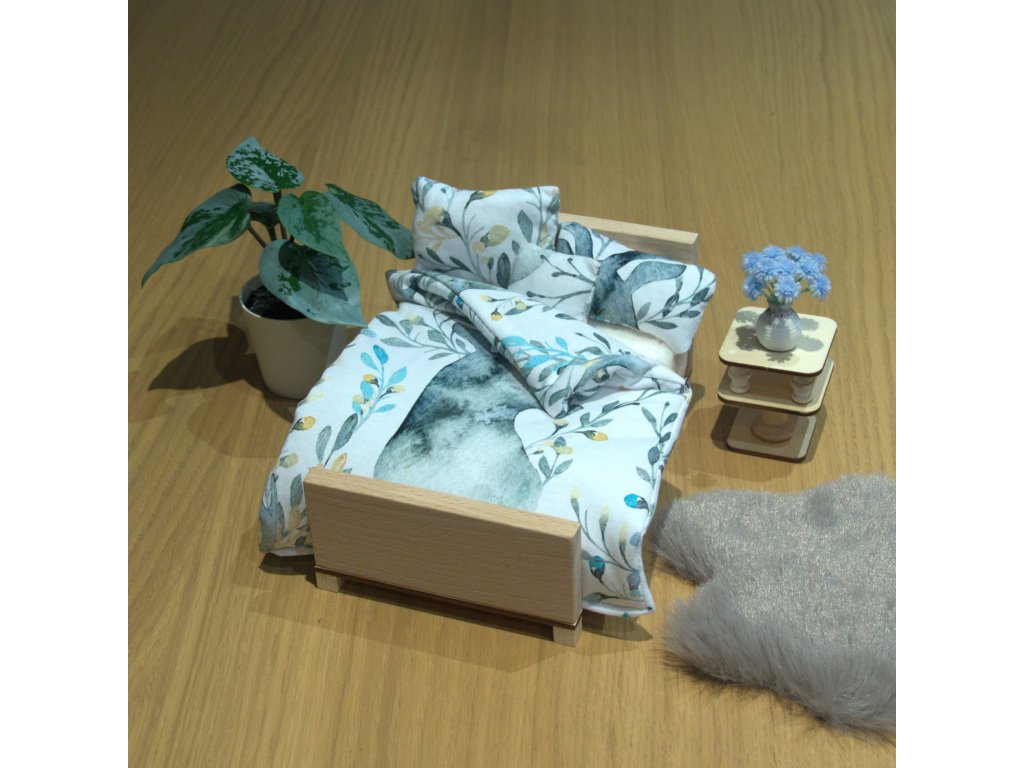 Každá postýlka si zaslouží krásné peřinky! Tato samostatná ložní souprava je ručně šitá z kvalitních bavlněných látek a připravená na sladké sny panenek typu Barbie a menších. Vybírat můžete z různých vzorů a barev – podle nálady, ročního období nebo stylu domečku.
