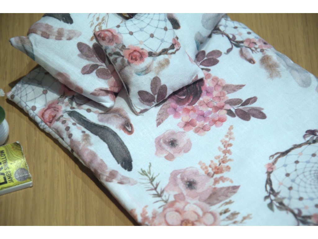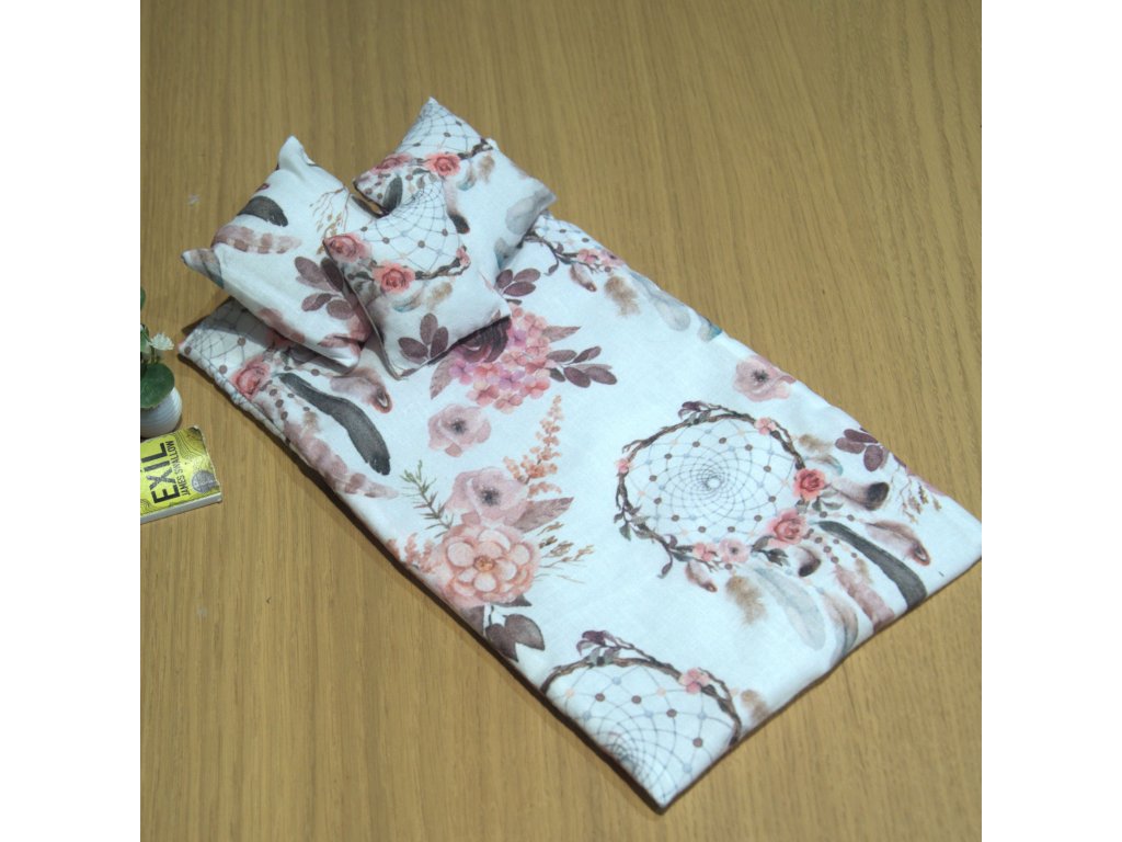 Každá postýlka si zaslouží krásné peřinky! Tato samostatná ložní souprava je ručně šitá z kvalitních bavlněných látek a připravená na sladké sny panenek typu Barbie a menších. Vybírat můžete z různých vzorů a barev – podle nálady, ročního období nebo stylu domečku.