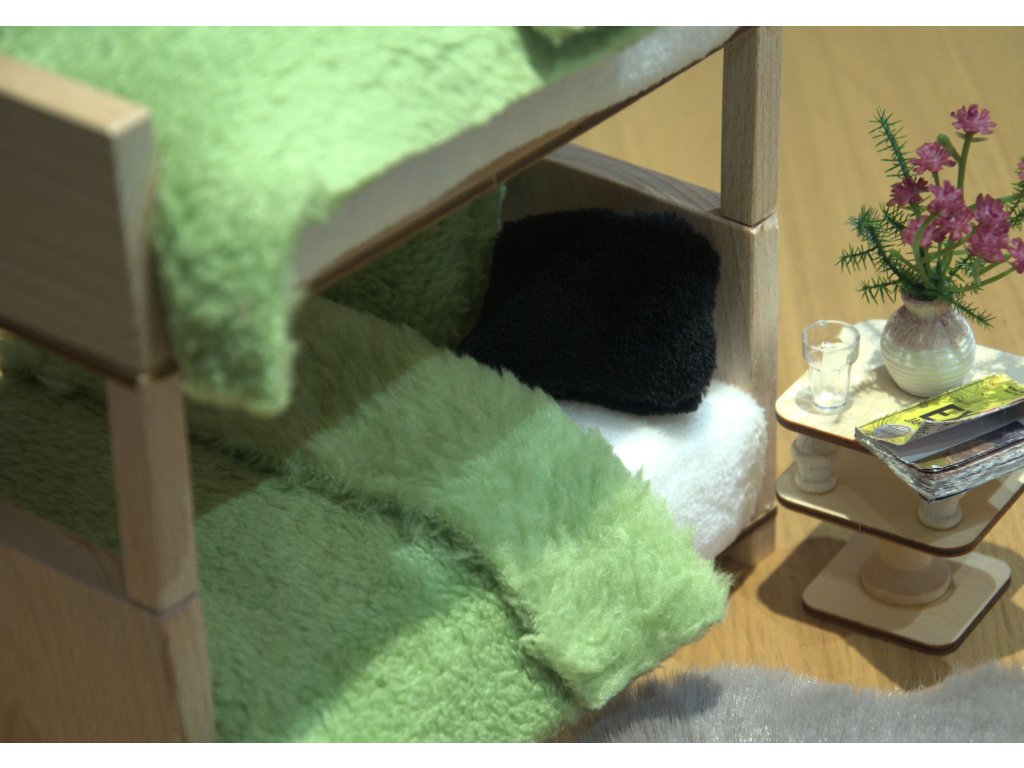 Každá patrová postýlka vzniká s láskou a fantazií, aby se panenky mohly zachumlat do měkké peřinky a snít ve dvou – jedna nahoře, druhá dole!