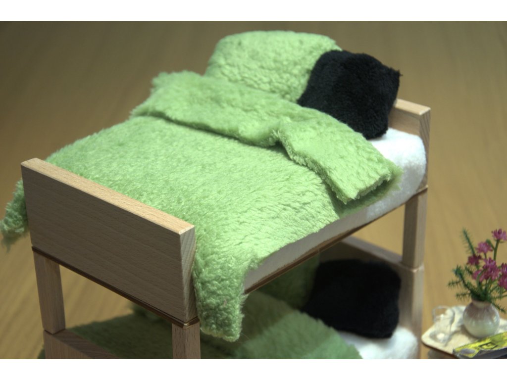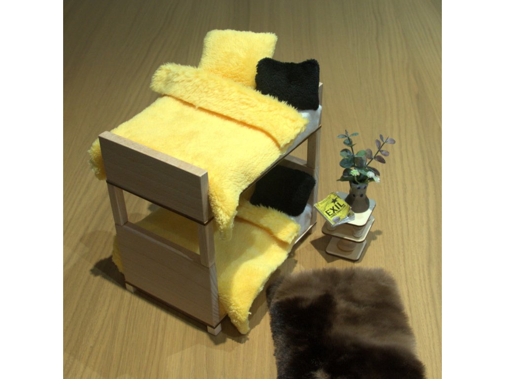 Když se panenky chtějí vyspat společně, ale každá má ráda svůj vlastní pelíšek, přichází na řadu patrová postýlka! Ručně vyrobená z kvalitního dřeva, pevná a krásně propracovaná, doplněná měkoučkými dekami a polštářky pro obě lůžka. Ideální pro panenky výšky cca 15cm, které si rády užívají společné večery a sladké sny.