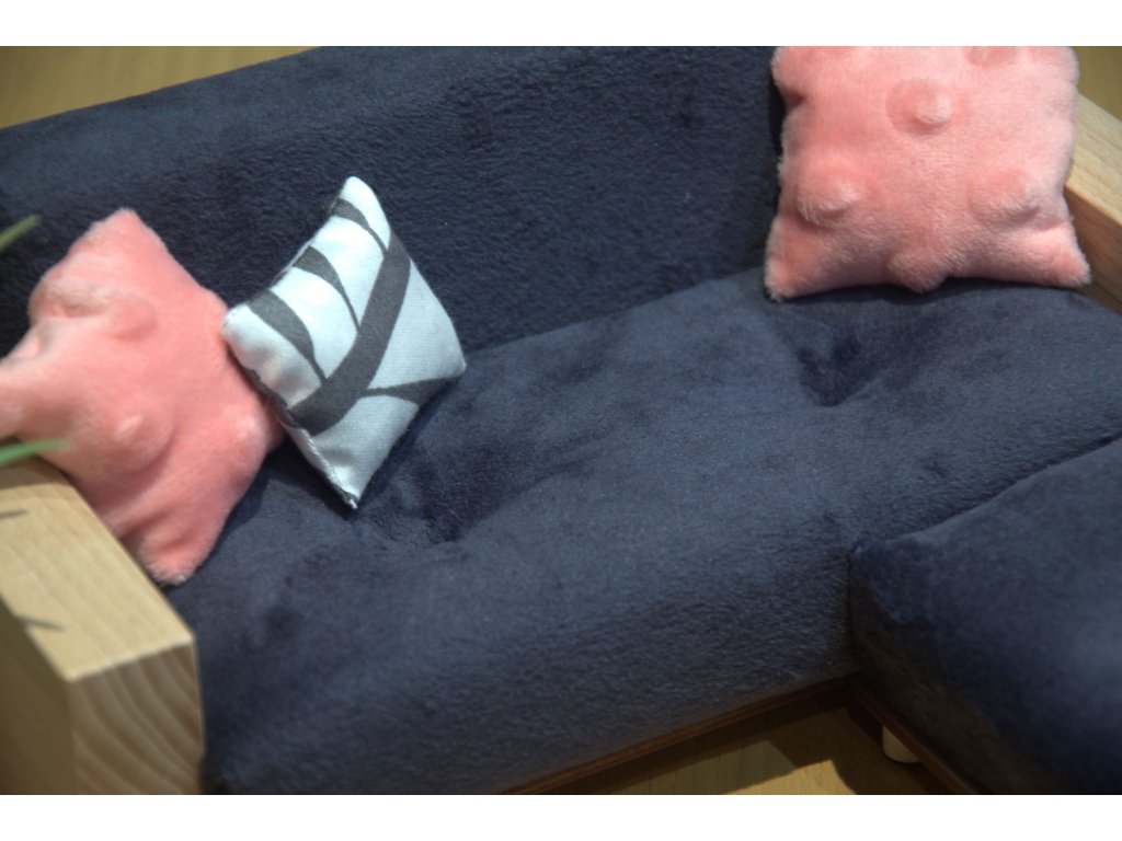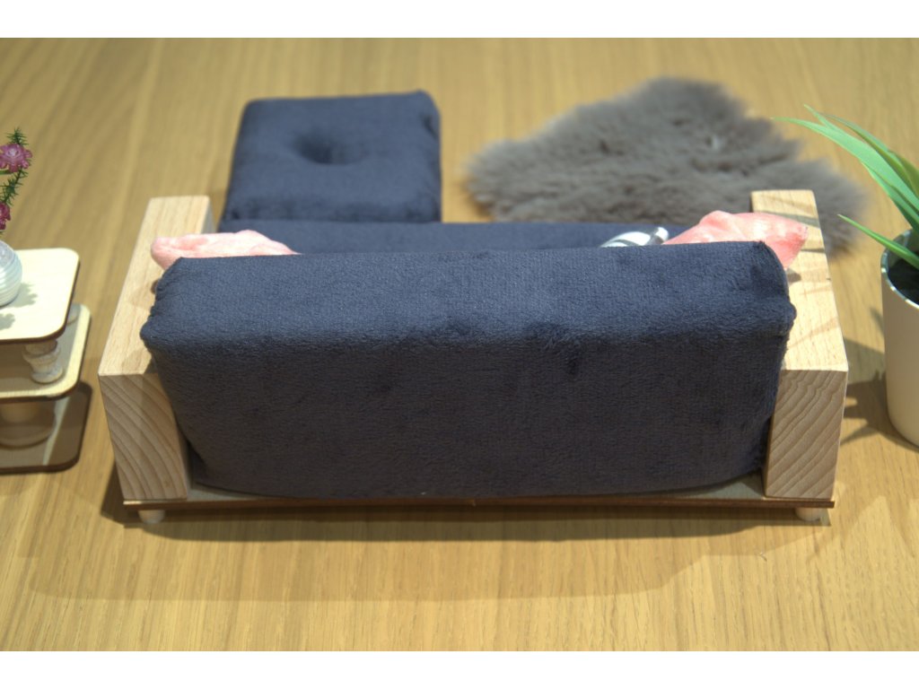 Když se panenky chtějí opravdu rozvalit, rohový gauč je jasná volba! Tento stylový kousek je ručně vyrobený z kvalitního dřeva, doplněný měkkým textilním polstrováním a navržený tak, aby krásně zapadl do rohu domečku. Skvěle ladí s konferenčním stolkem, křesílkem i chlupatým koberečkem – zkrátka obývák snů pro panenky typu Barbie a menší.